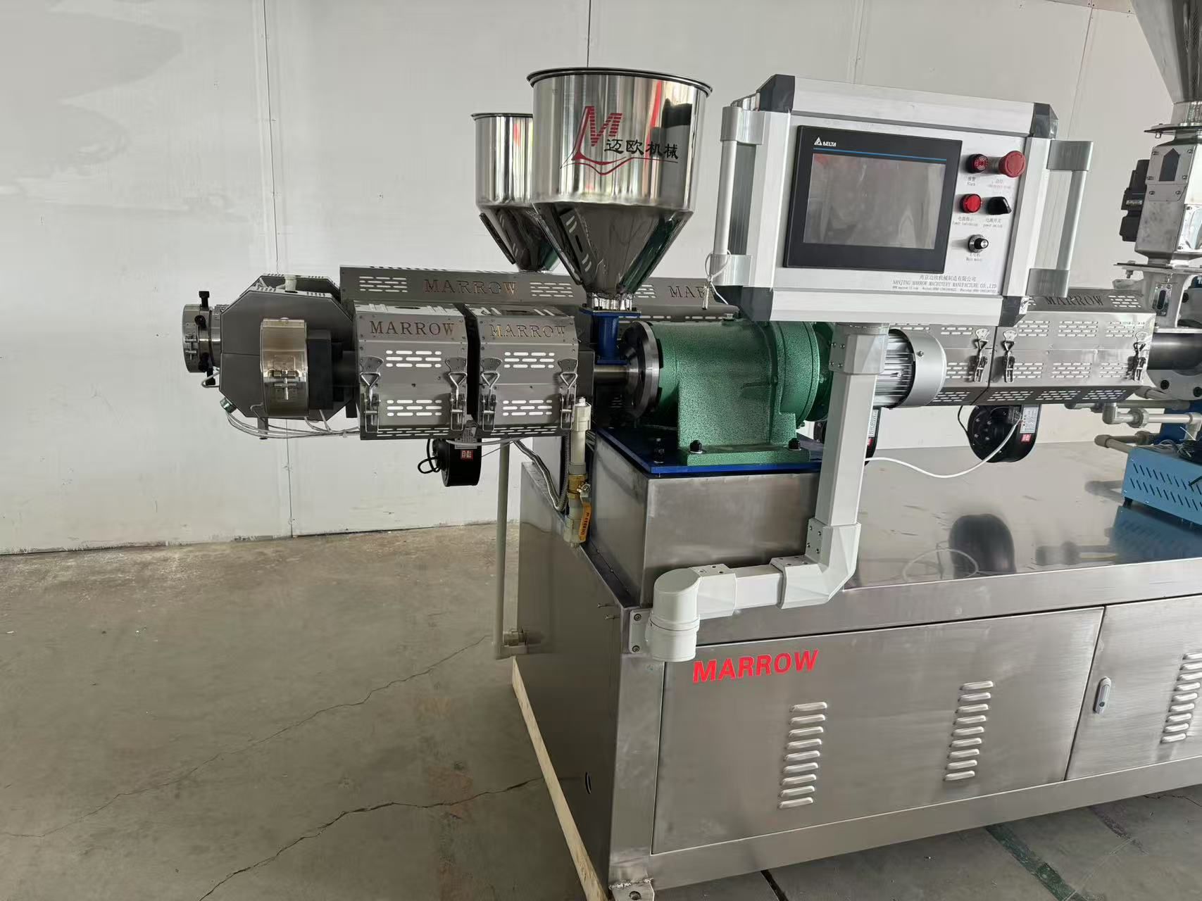 1、 专利结构65mm螺杆设计,33:1长径比,满足PLA和PP料的生产,173轮箱,30KW高效节能型伺服电机;